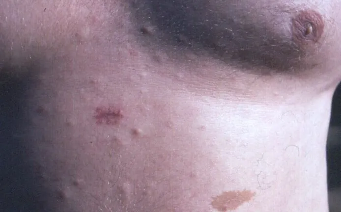 Характерное для нейрофиброматоза пятно на коже»кофе с молоком»